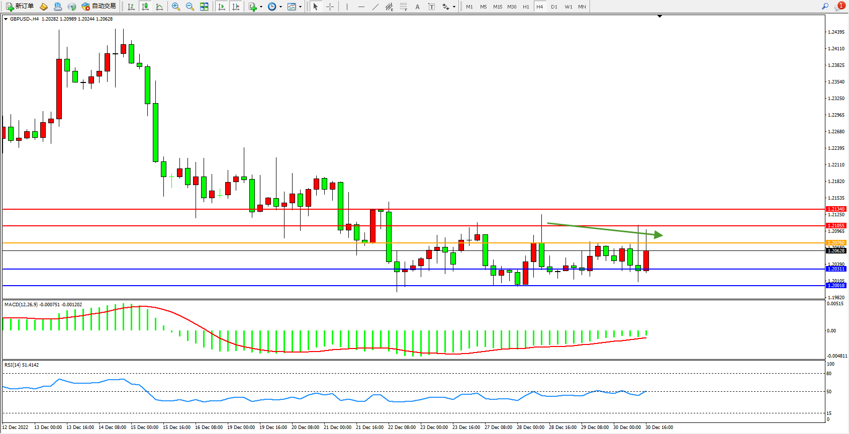 英镑美元GBPUSD ——4小时K线图显示: