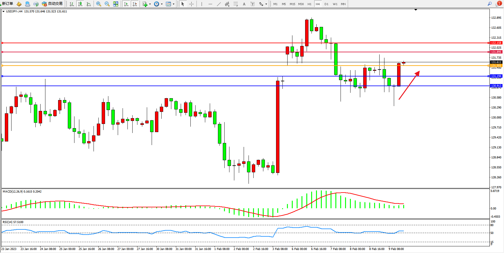 交易策略:131.501上方看涨,目标131.895、132.158