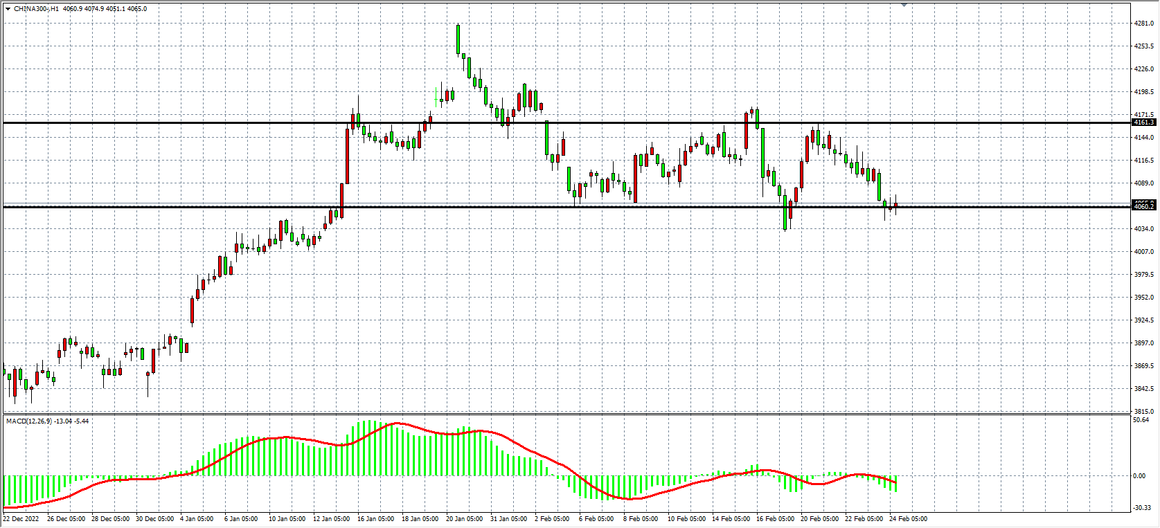 4小时图看,沪深300在回调4060之后出现止跌,趋势继续进入盘整,同时MACD于零轴之下开始小幅放量,当前支撑关注4060,该位之上看4120-4160,下破4060看4000-3950。