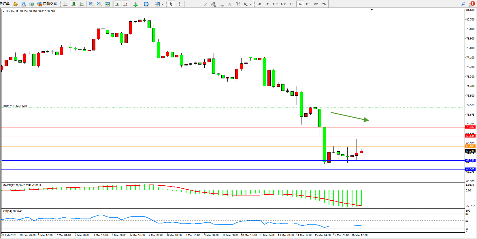 交易策略:68.685下方看跌,目标67.320 66.501