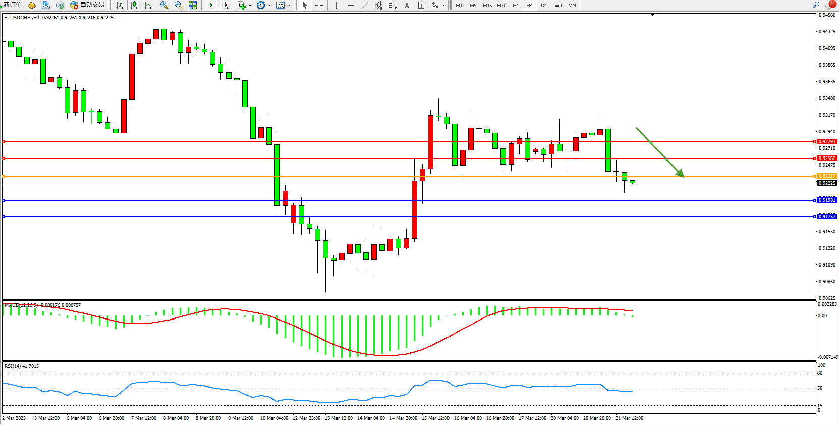 美元瑞郎USDCHF——4小时K线图显示: