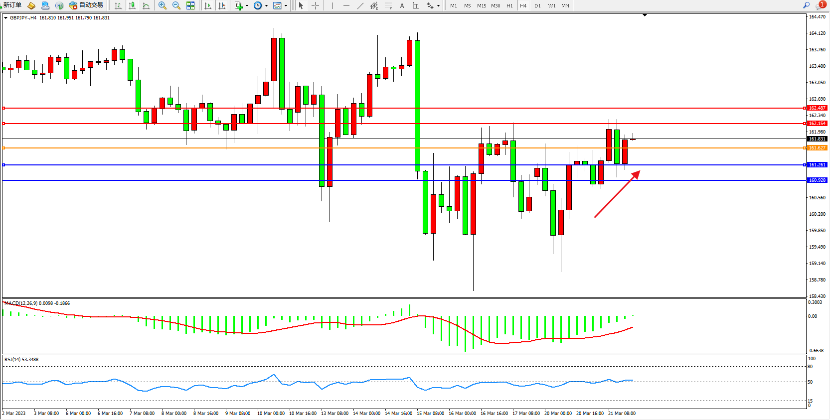 交易策略:161.627上方看涨,目标162.154 162.487