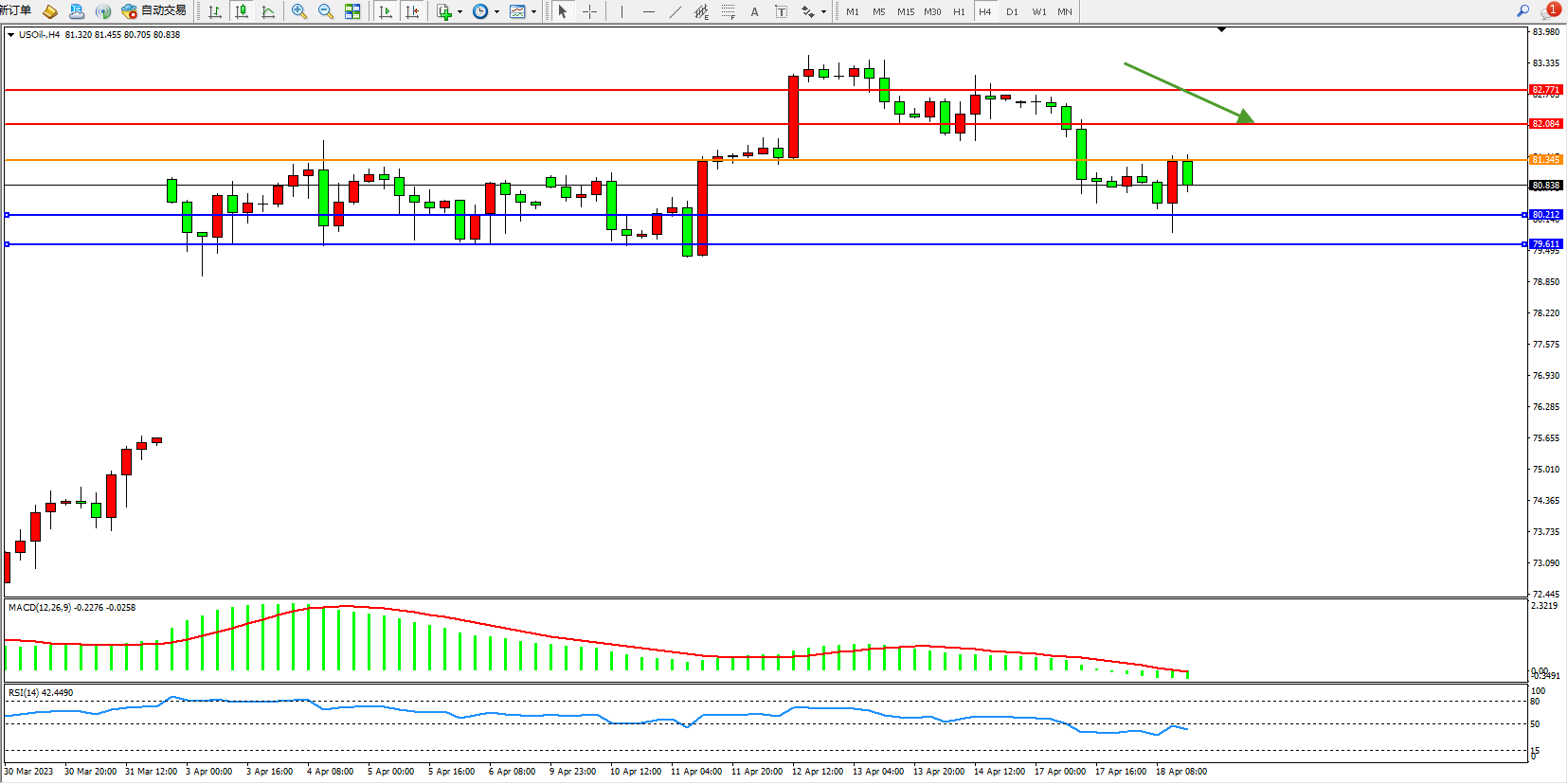 交易策略:81.345下方看跌,目标80.212 79.611