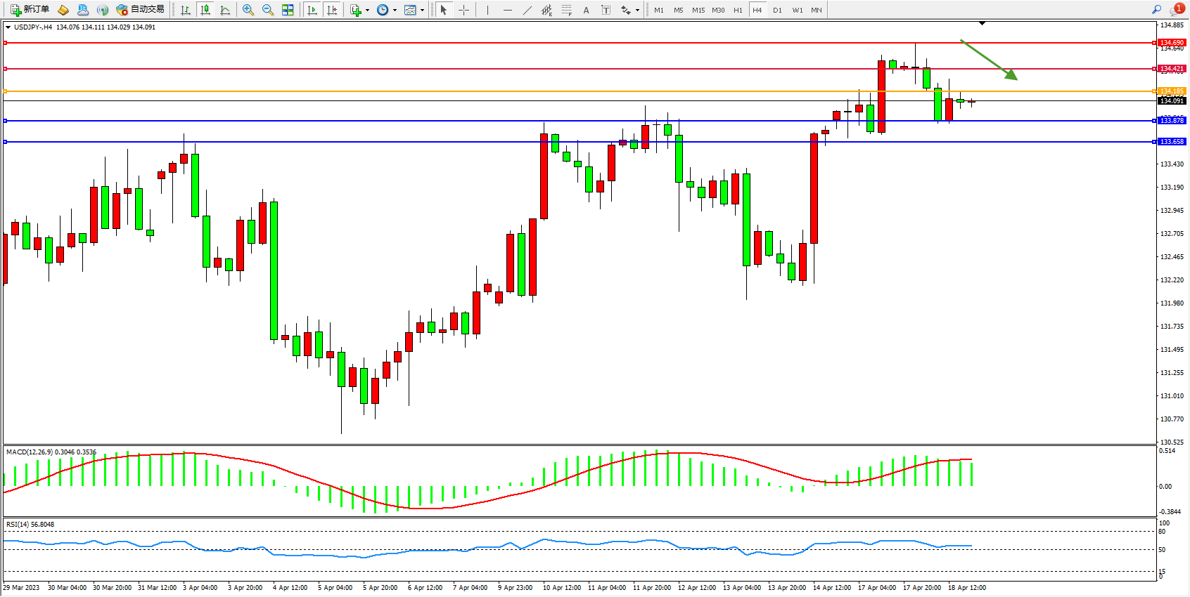 备选策略:134.185上方看涨,目标134.421 434.690
