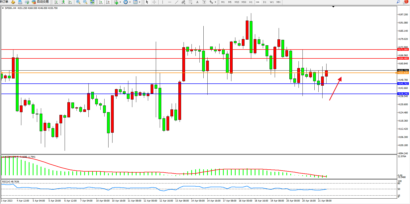 标普SP500——4小时K线图显示: