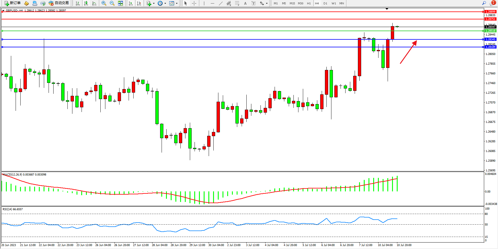 英镑美元GBPUSD ——4小时K线图显示: