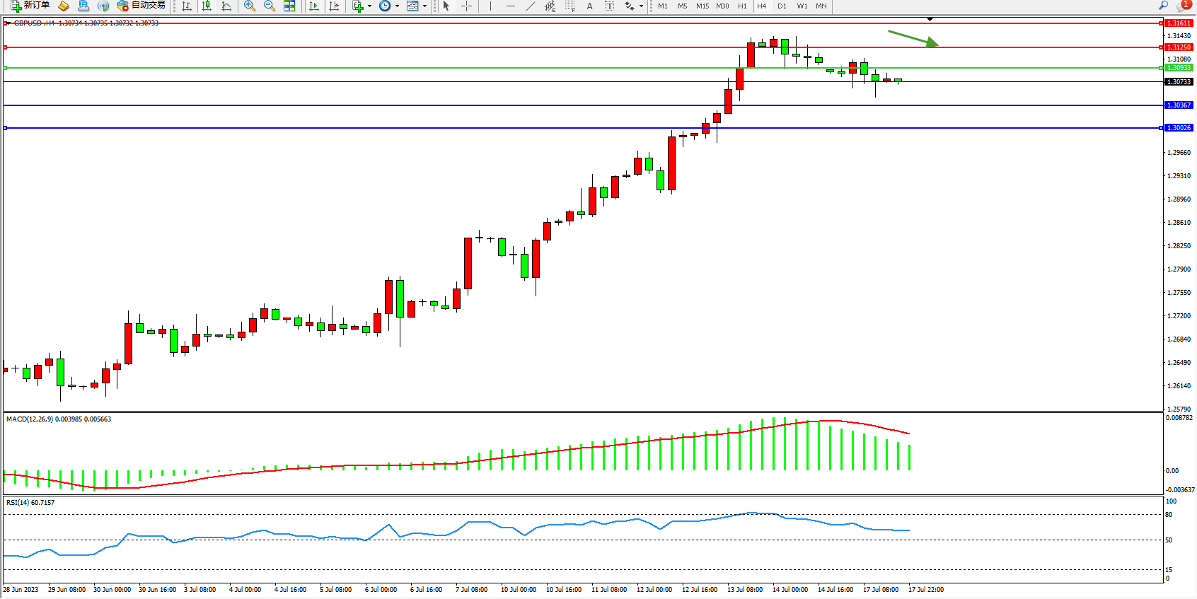 英镑美元GBPUSD ——4小时K线图显示: