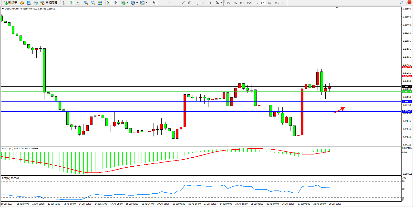 交易策略:0.86779上方看涨,目标0.87166  0.87394