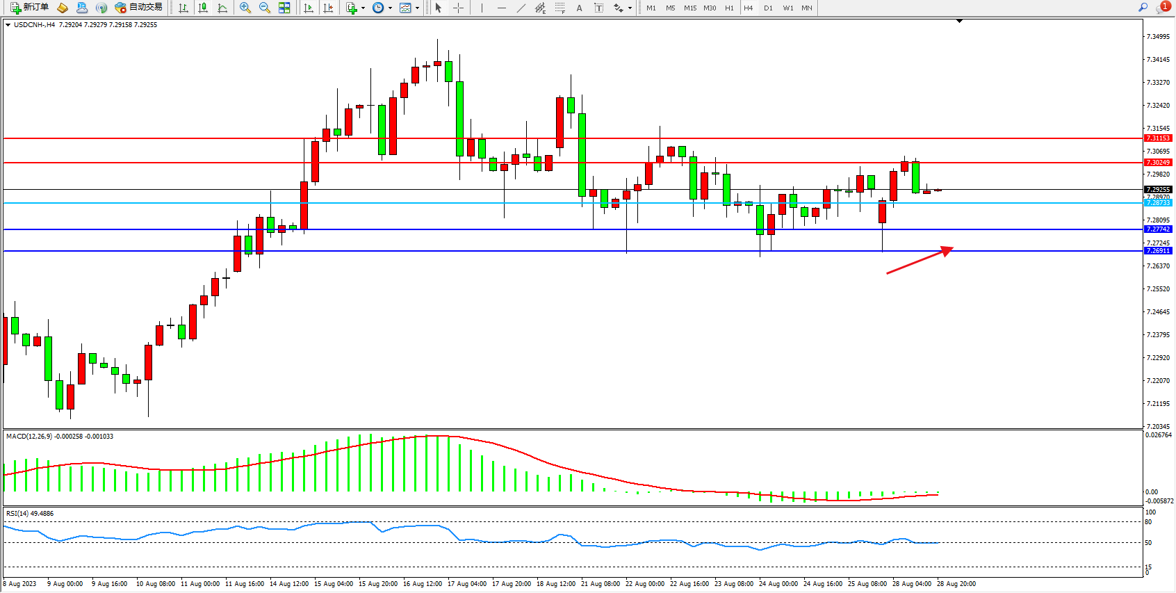 备选策略:7.28733下方看跌,目标7.27742  7.26911