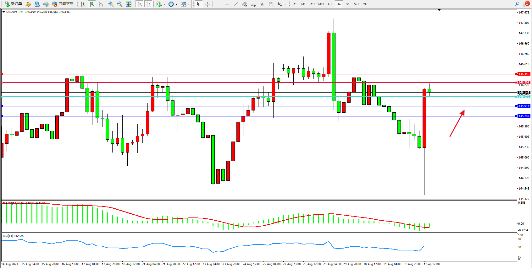 阻力位:146.305 146.446
