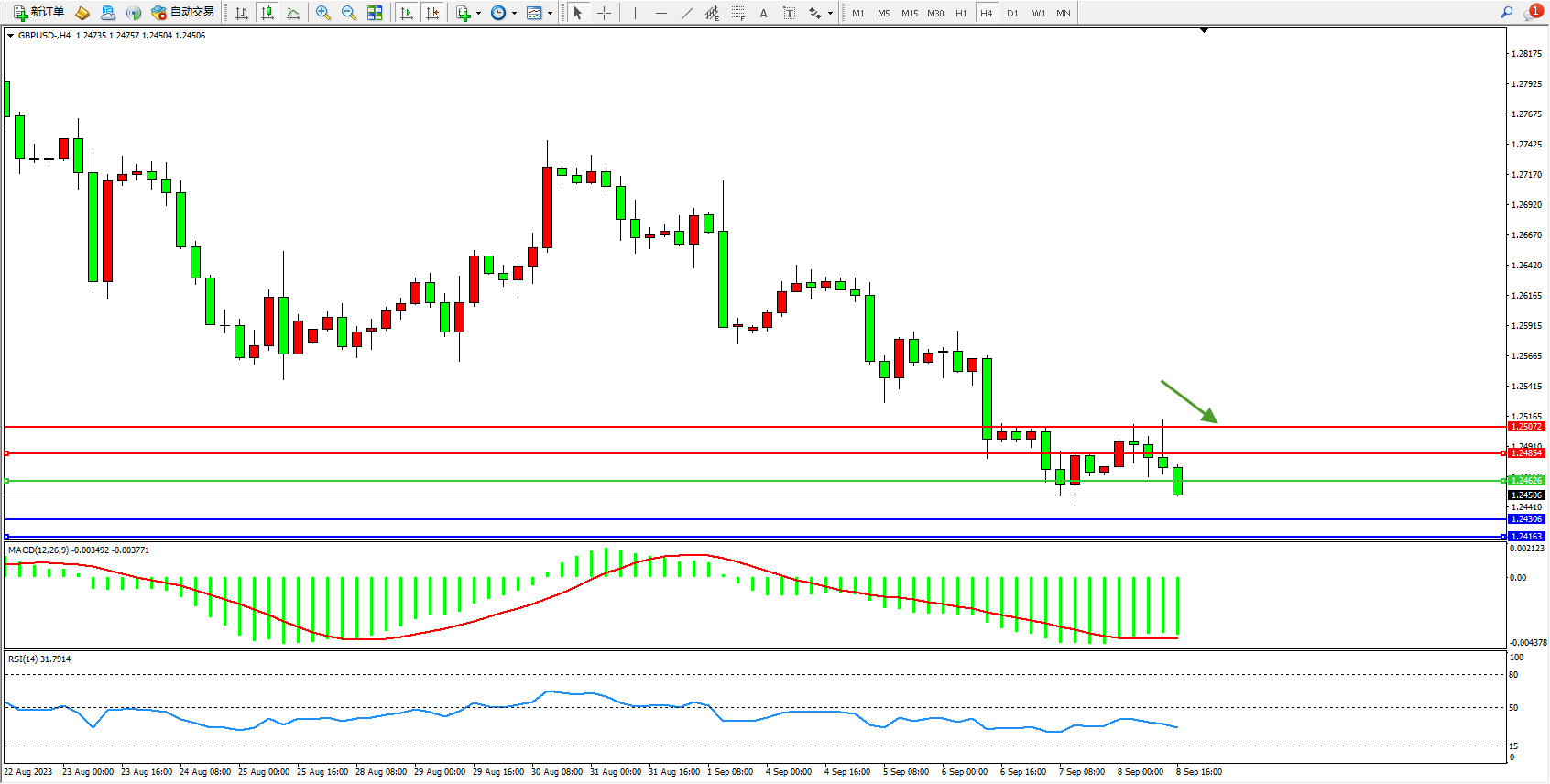 英镑美元GBPUSD ——4小时K线图显示: