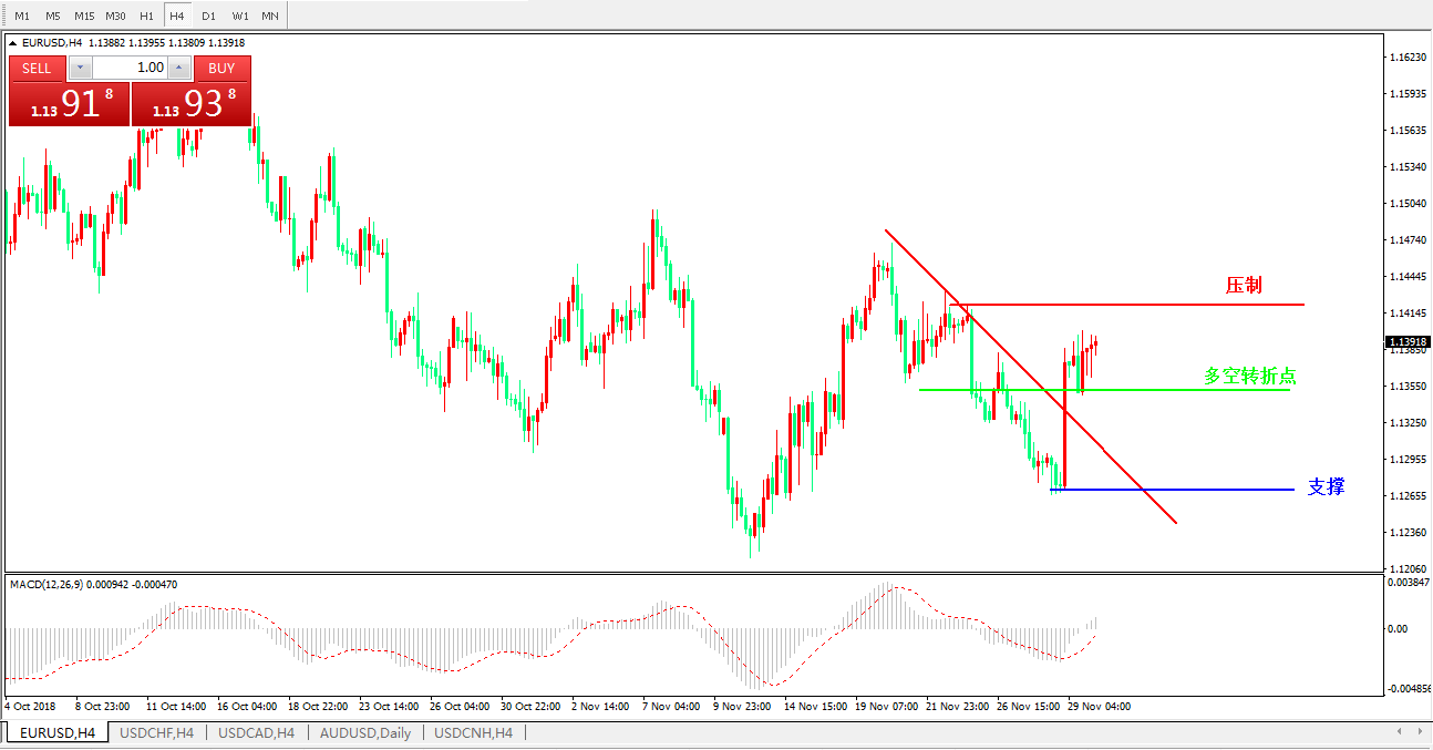 欧元美元EURUSD4小时图: