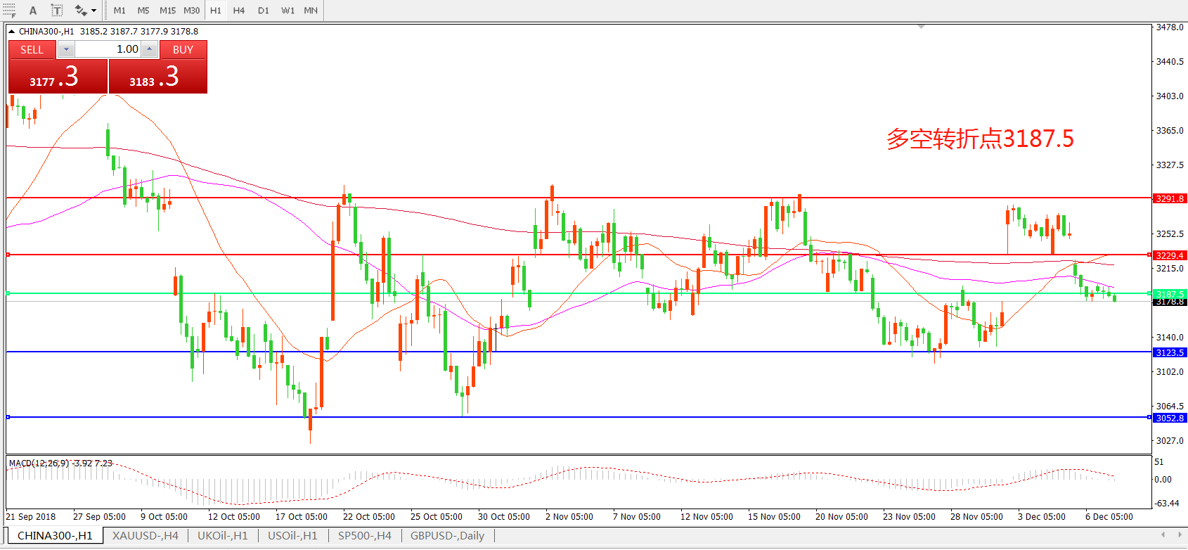 多空转折点:3187.50