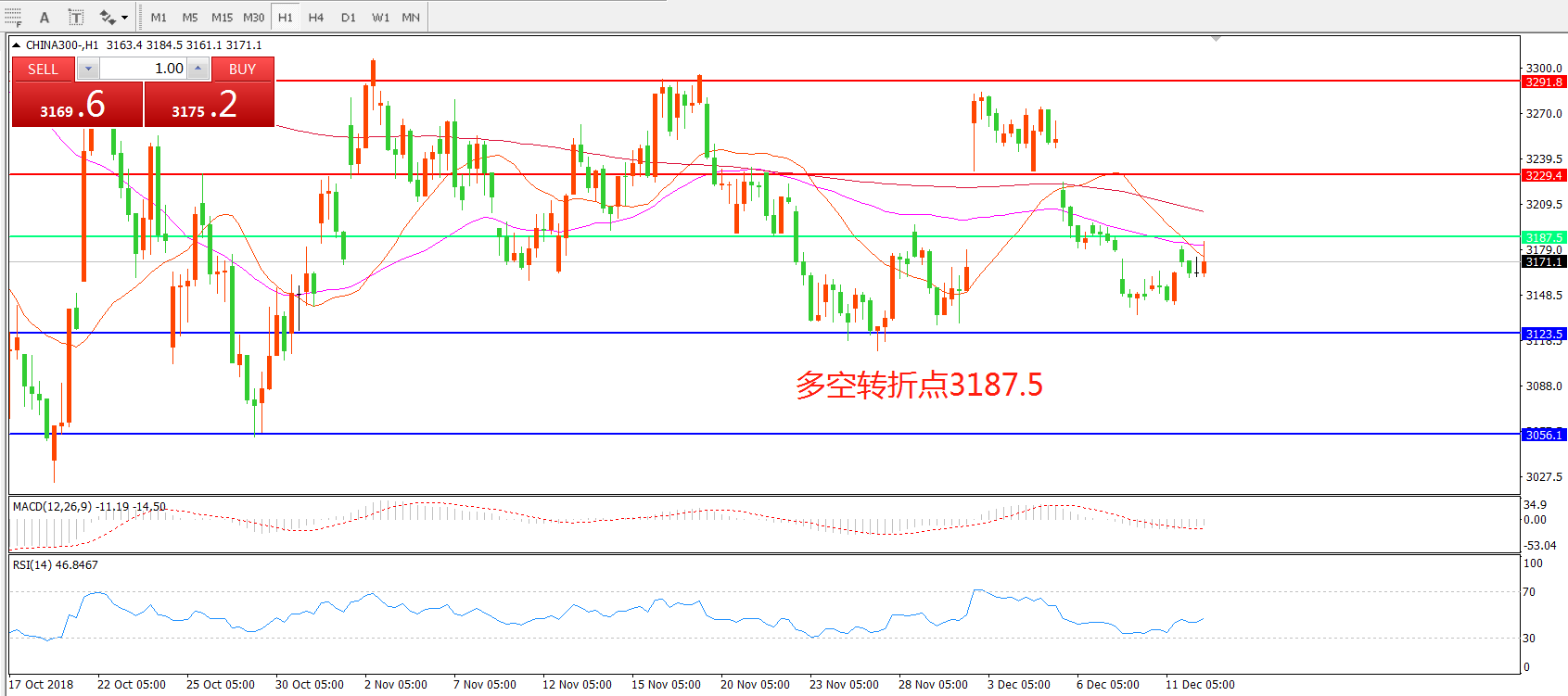 多空转折点:3187.50