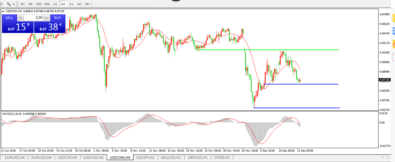 美元兑人民币USDCNH4小时图: