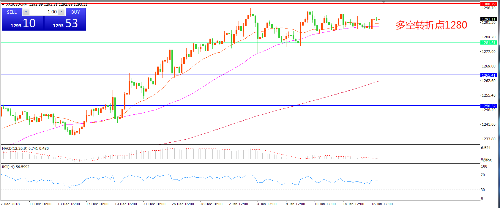 交易策略:在1280.00之上看涨,目标1300.00  1319.00