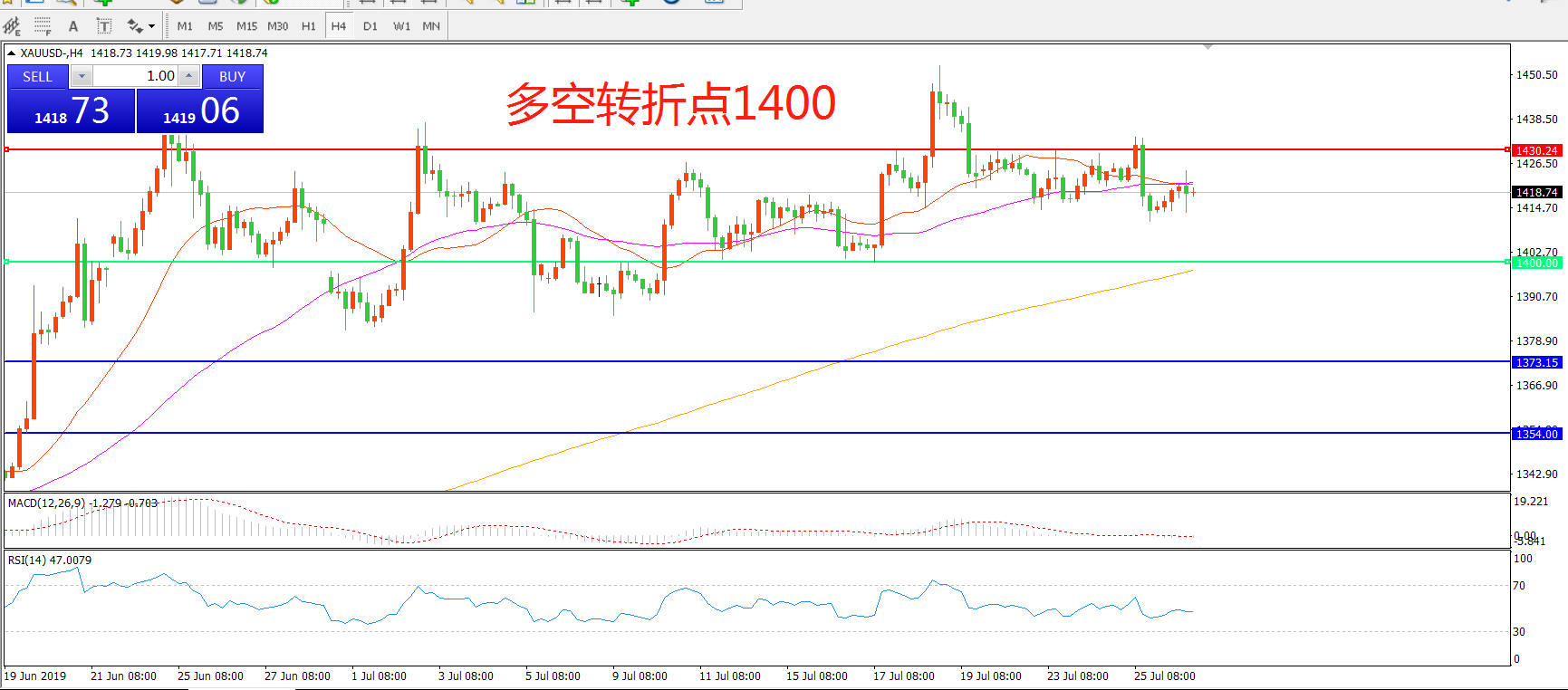 交易策略:在1400.00之上看涨,目标1430.00   1450.00