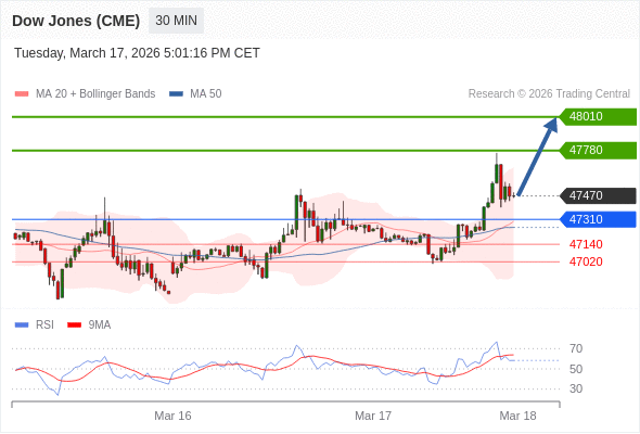 在 47310 之上,看涨,目标价位为 47780 ,然后为 48010 。
