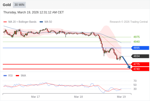 在 4895 之下,看跌,目标价位为 4775 ,然后为 4740 。