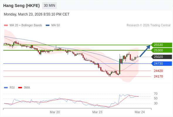 在 24730 之上,看涨,目标价位为 25300 ,然后为 25530 。
