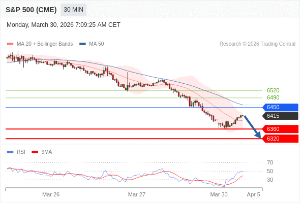 在 6450 之下,看跌,目标价位为 6360 ,然后为 6320 。