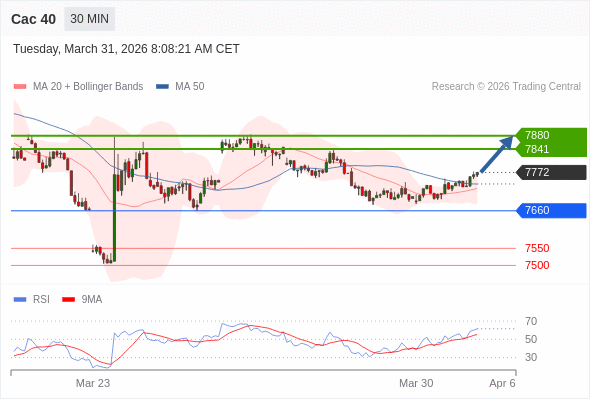 Cac 40 当日内: 持续上升。