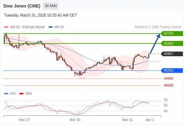 在 45290 之上,看涨,目标价位为 46390 ,然后为 46790 。