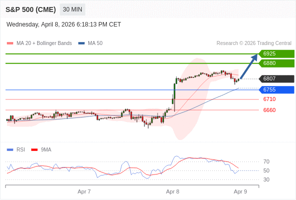 在 6755 之上,看涨,目标价位为 6880 ,然后为 6925 。