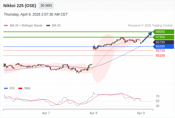 在 56200 之上,看涨,目标价位为 57350 ,然后为 58000 。