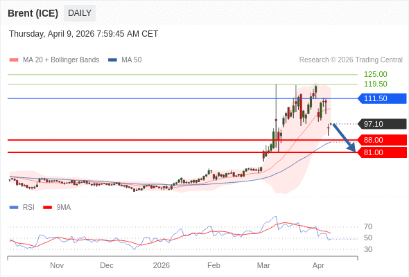 交易策略: 在 111.50 之下,看跌,目标价位为 88.00 ,然后为 81.00 。