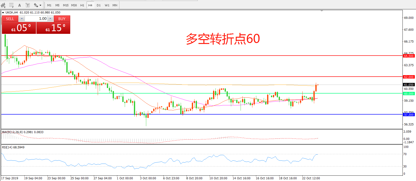 多空转折点:60.00
