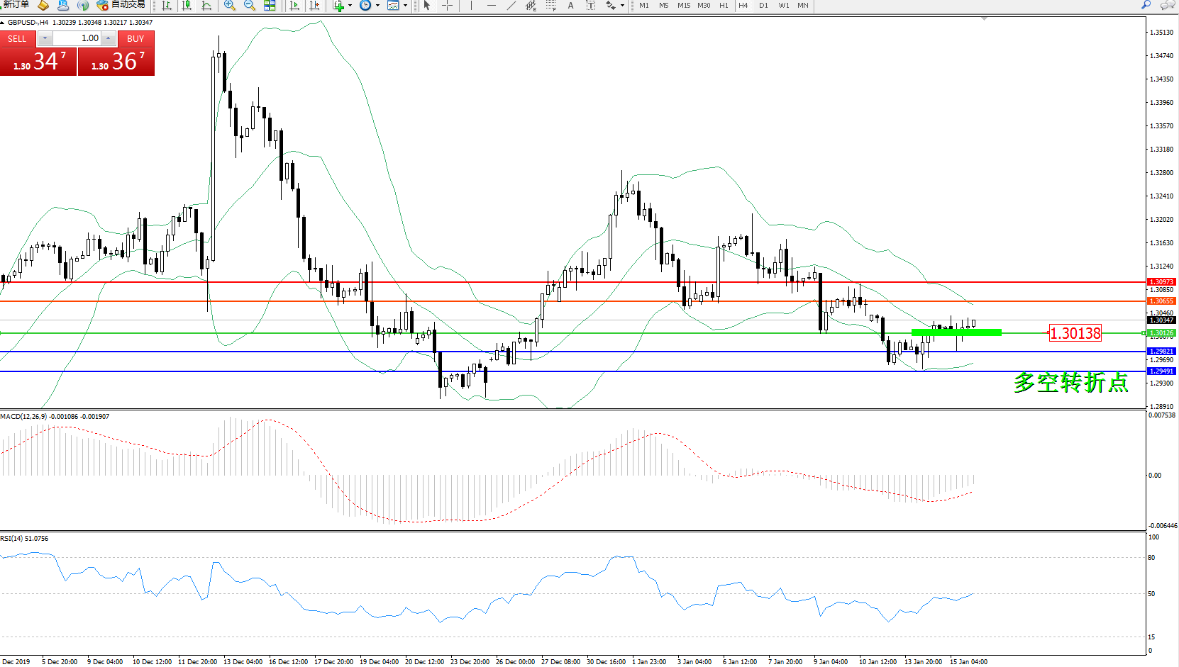 交易策略:1.30138上方看涨,目标1.306551.30973