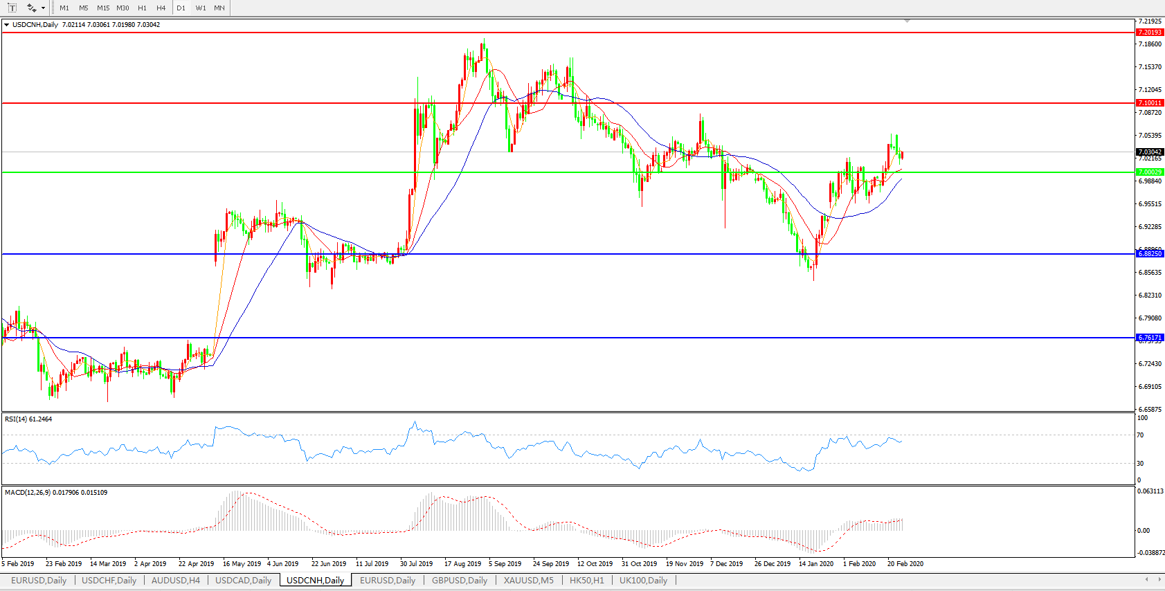 交易策略: 在7.0000之上,看涨,目标价位为7.1000,然后为7.2000。
