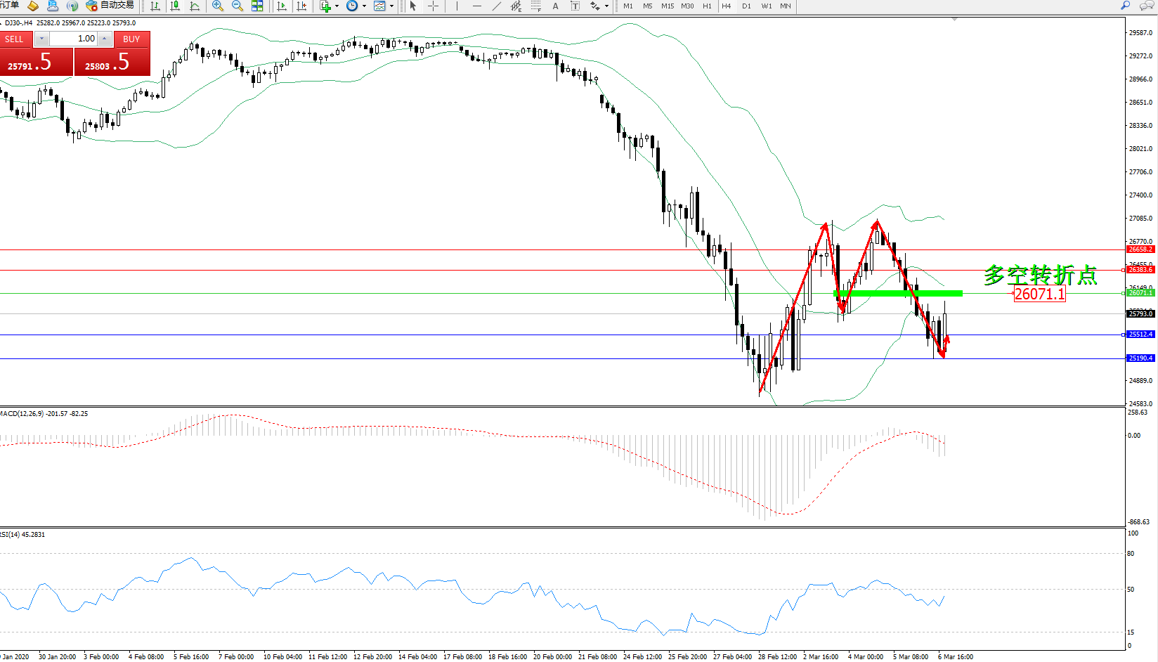 技术点评:空头动力持续下行后低位走出M型态,延续布林带指标下轨内侧处于中下轨区间震荡下移中,且布林带指标呈缓慢震荡张口走势中,关注中轨附近节点,MACD指标处于0轴线下方空头区域弱势整理平移中,RSI指标处于50均衡线下方空头区域窄幅整理有上移迹象;
