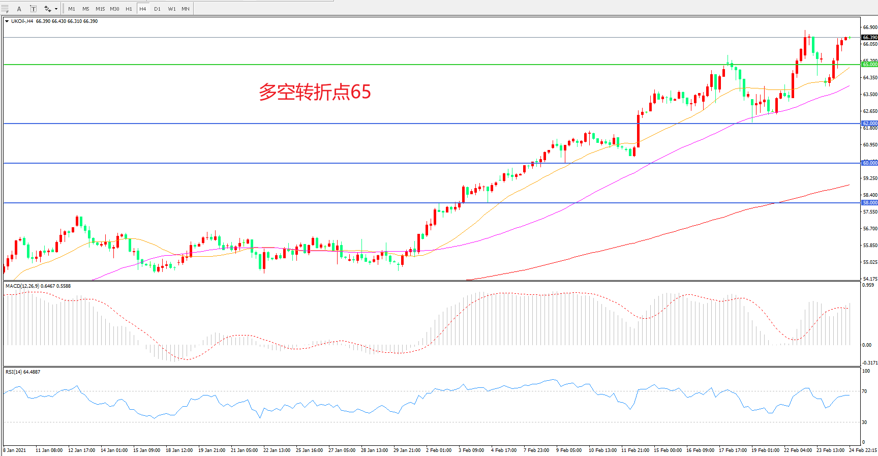多空转折点:65.00