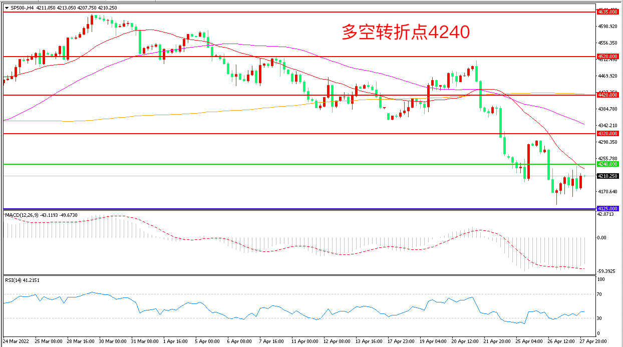 交易策略:在4240.00之下看跌,目标4125.00 4010.00