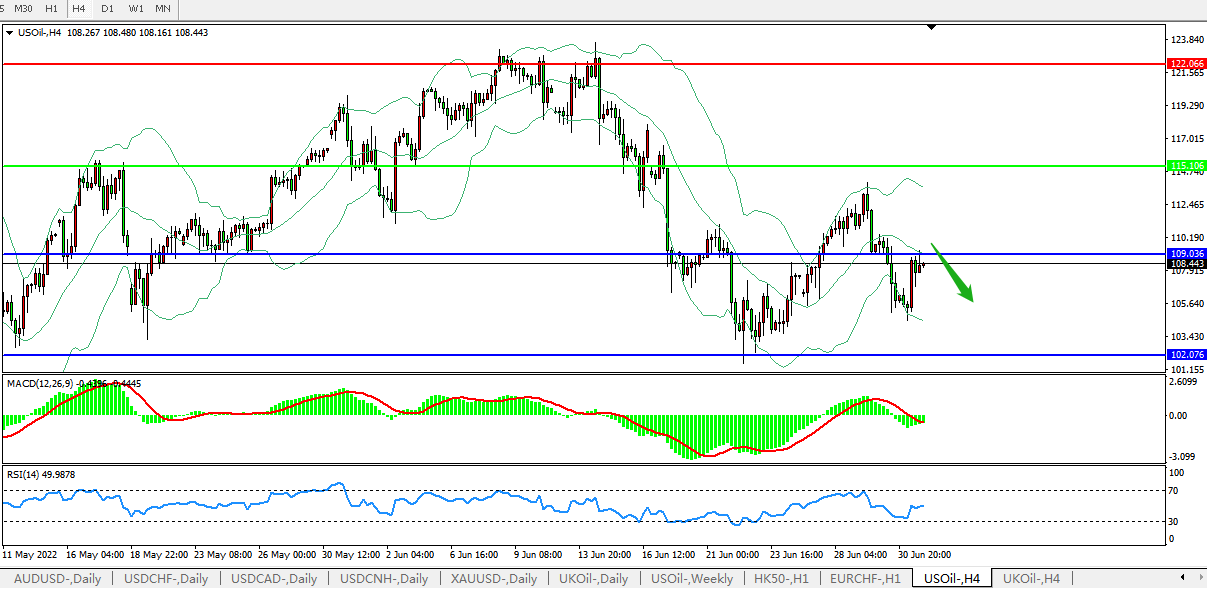 美国原油USOil 4小时图