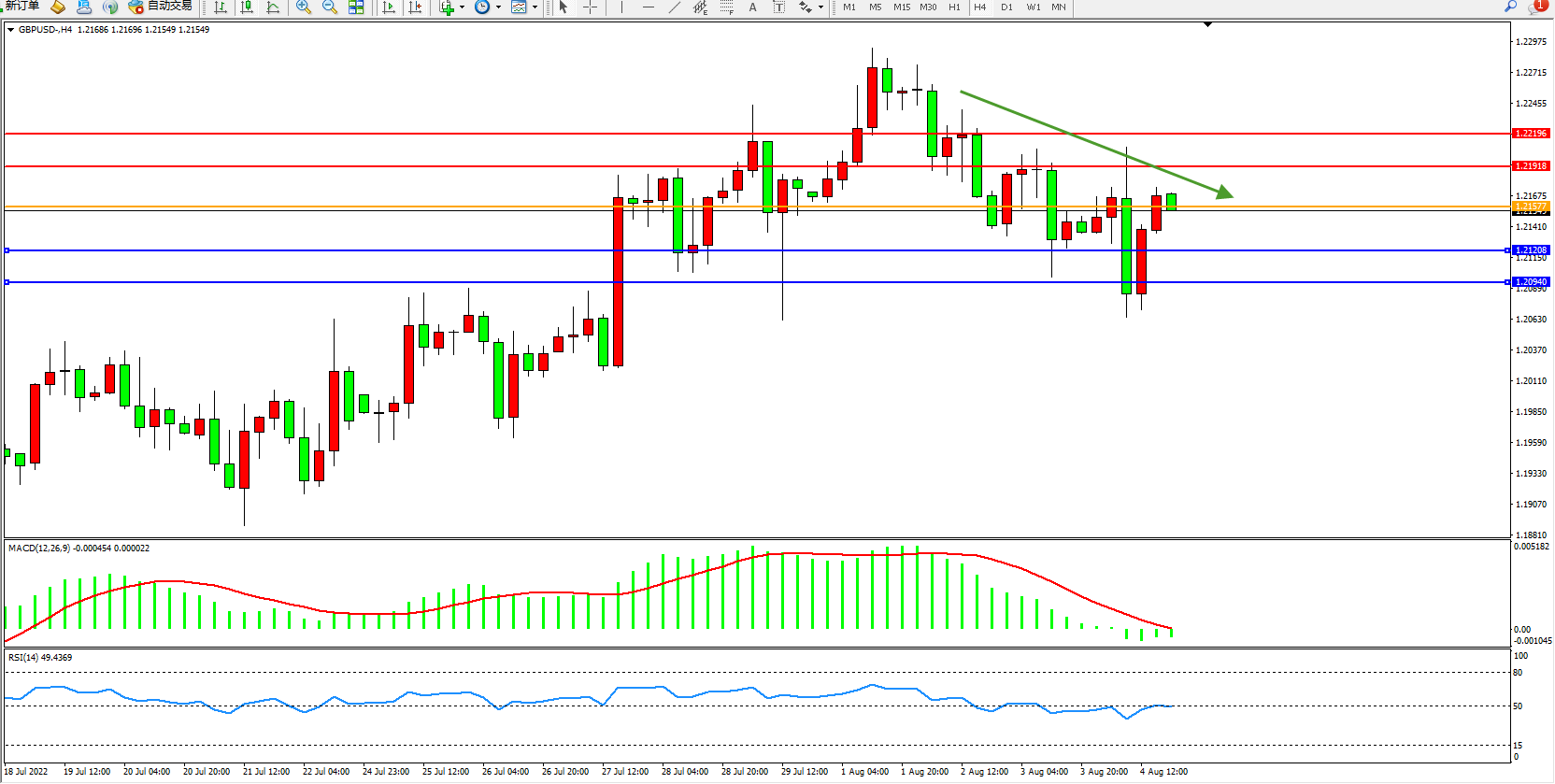 英镑美元GBPUSD ——4小时K线图显示: