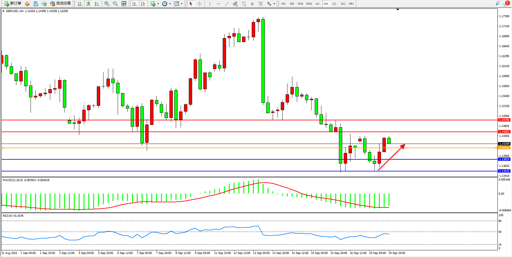 英镑美元GBPUSD ——4小时K线图显示: