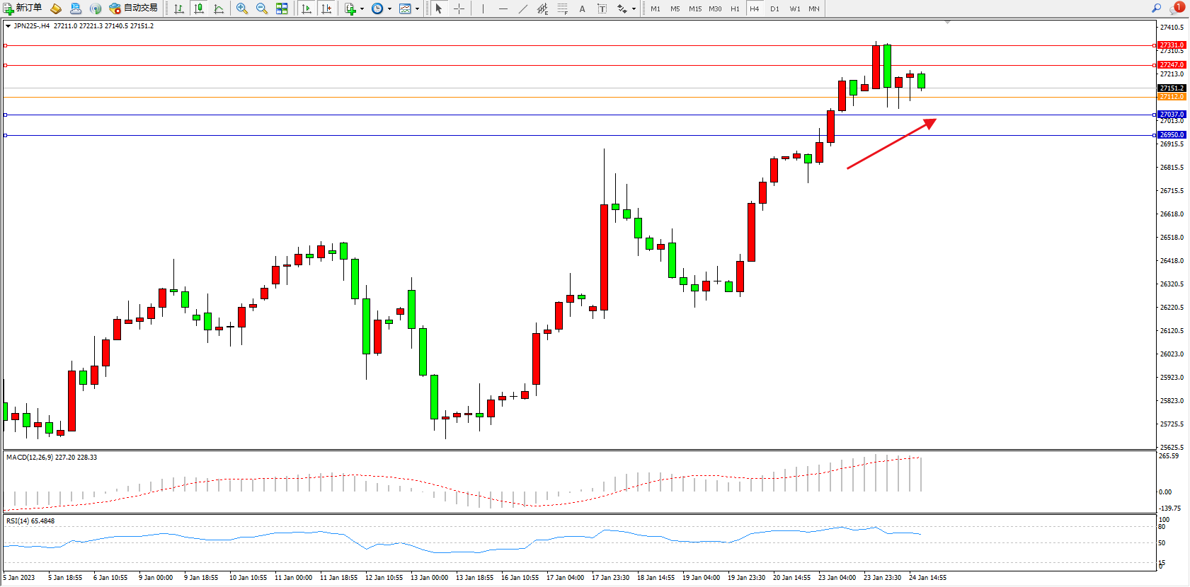 日经225指数1月24日(周二)收盘上涨398.96点,涨幅1.48%,报27305.00点。日本财务大臣铃木俊一:日本央行购买债券不是想将债务货币化,很难说是什么影响了汇率,外汇汇率是由市场决定的。