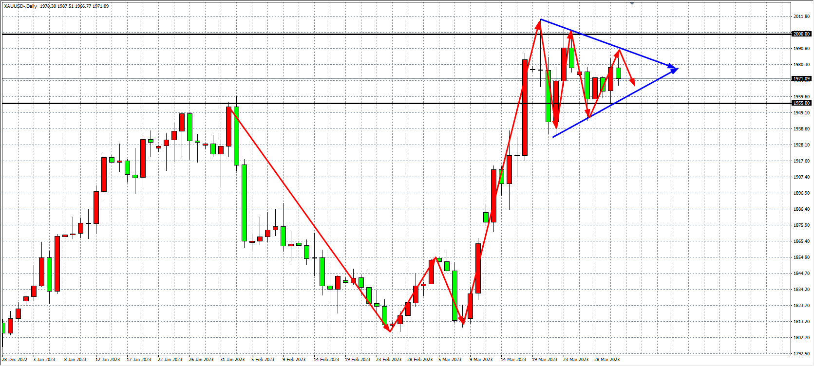 在经历了数周的“银行业动荡”之后,上周市场出现了一点“企稳”的迹象,风险情绪有所好转,金价出现高位徘徊。