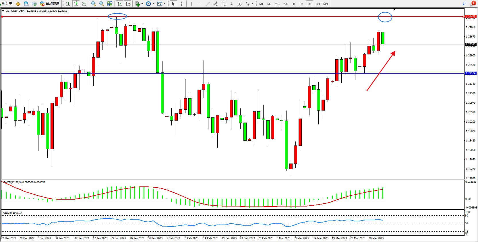 英国国家统计局公布的数据显示,英国第四季度国内生产总值(GDP)年化增长率为0.6%。该数据继第三季度录得 0.4% 的增长之后,好于市场预期的 0.4%。然而,英镑未能利用乐观的英国 GDP 数据。在英国国家统计局发布后小幅走高,并在一个月内首次回到1.2400上方。过去几周,英镑兑美元汇率略有上涨。市场持续预期美联储可能最终结束激进的加息周期.