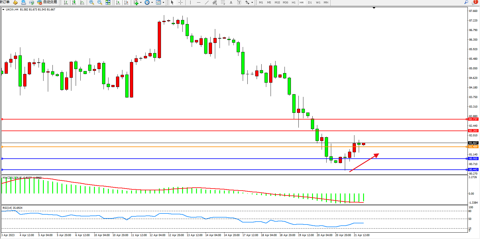 交易策略:81.489上方看涨,目标82.203 82.737