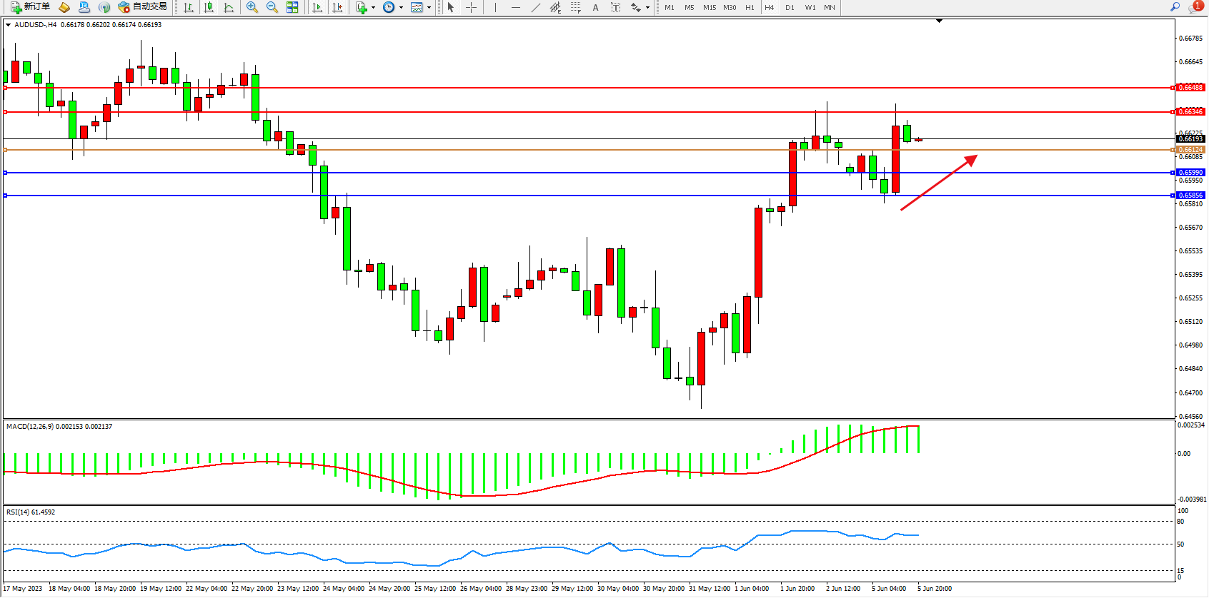 阻力位:0.66346  0.66488