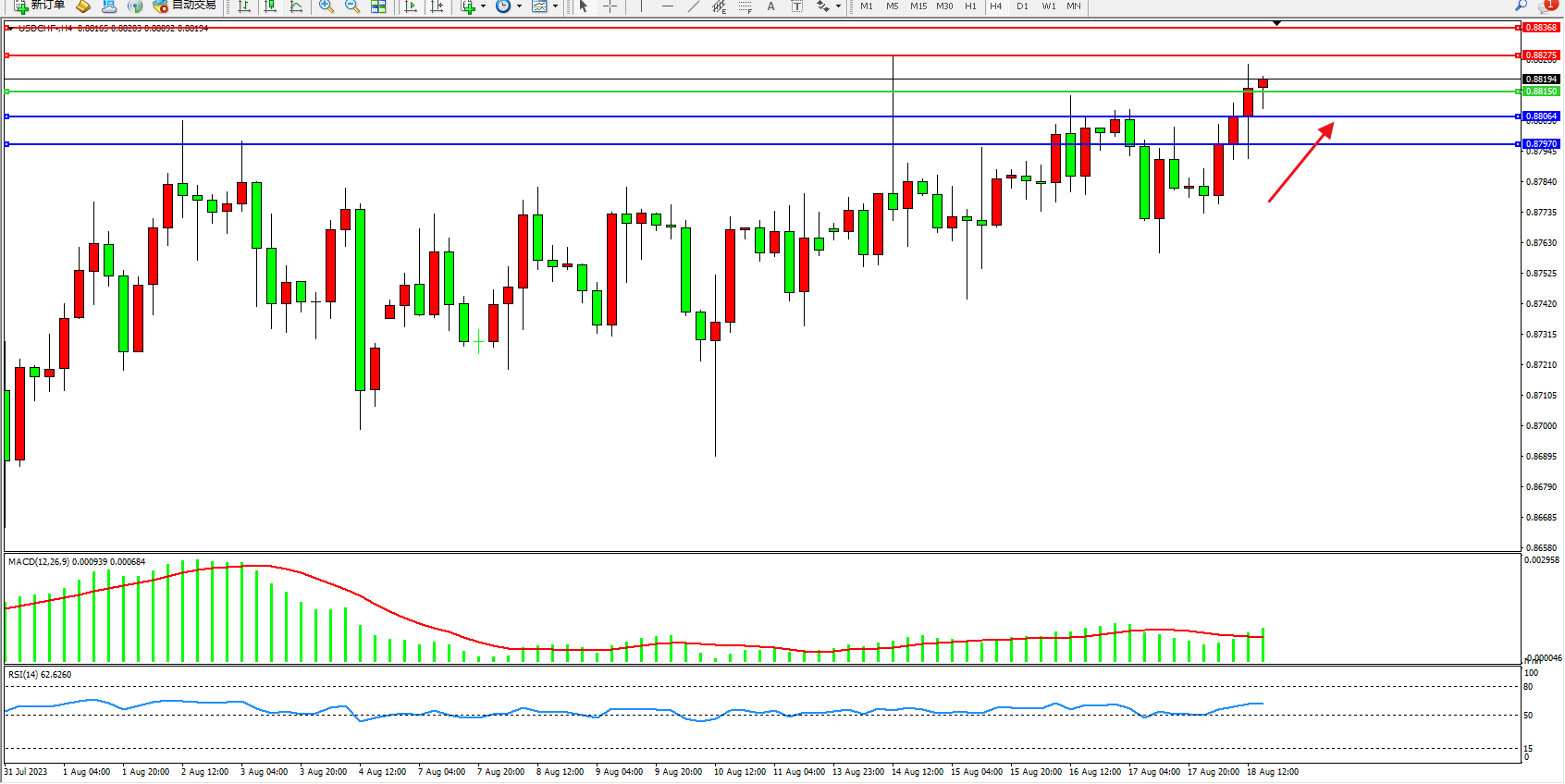 交易策略:0.88150上方看涨,目标0.88275  0.88368