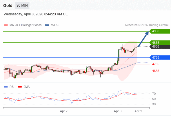 在 4755 之上,看涨,目标价位为 4865 ,然后为 4950 。